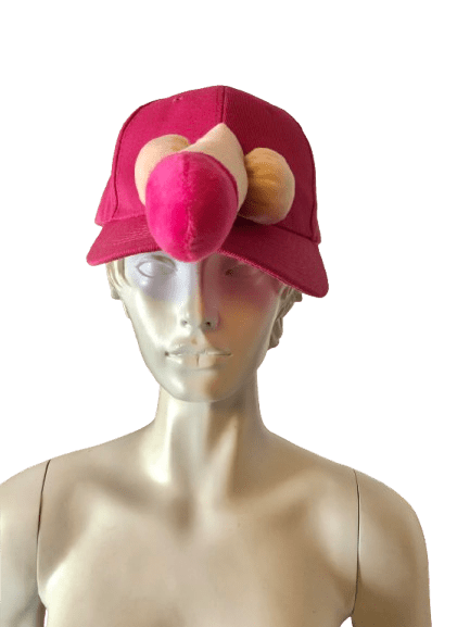 Lyserød kasket med plys penis og testikler i en kontrast farve. Super sjov til polterabender, tøsefest. Kan justeres i nakken
